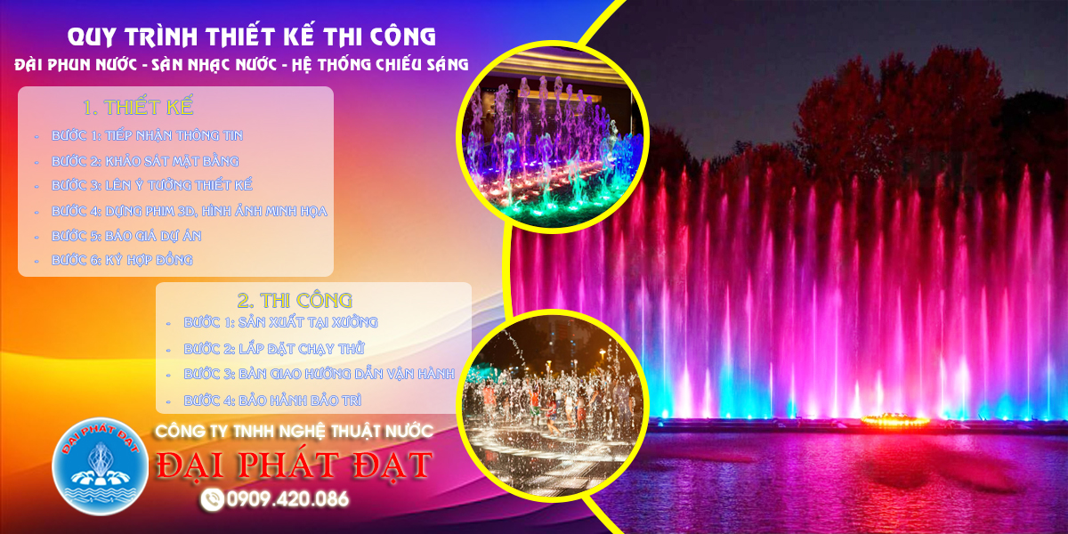 Chúng tôi cam kết mang đến cho khách hàng những công trình đài phun nước nghệ thuật và các giải pháp liên quan đến nước, ánh sáng và âm thanh vượt trội về chất lượng